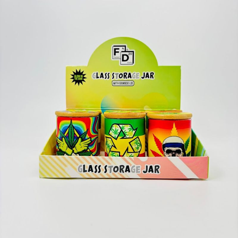 Faded Daily Glow In The Dark - Glass Storage Jar With Bamboo Lid | 12 Jars/Display