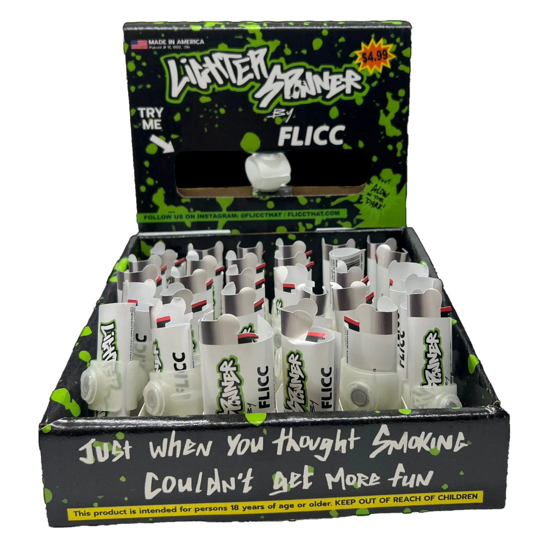The Lighter Spinner is the perfect product for night-time fun. Each box contains 30 pieces...
