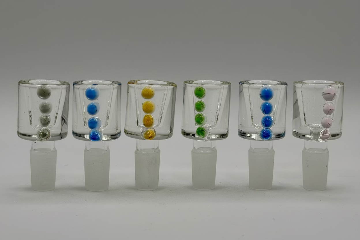 Add a pop of style and functionality to your smoking setup with the Glass Bowl Piece - Clear Bowl with Color Dots. This high-quality glass accessory is perfect for enhancing your customers' smoking experience while offering an aesthetically pleasing design. Each box contains 9 vibrant, mixed-color pieces, making it an excellent choice for retailers looking to stock versatile and visually appealing products.